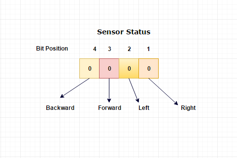 Whenever the sensor wants to update any status, it will use the above four bits and set the status. Like, if the sensor sets first bit as 1 which indicates that the car should turn to the right direction.